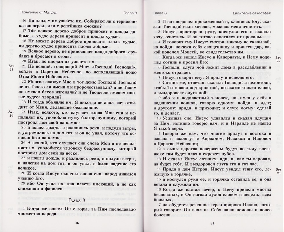 Издание Нового Завета Господа нашего Иисуса Христа в русском Синодальном переводе. Указаны зачала, каждый стих приведён с новой строки. Использован крупный, удобный для чтения шрифт, который подходит для слабовидящих и при чтении в недостаточно освещенных помещениях. Книга большого формата.