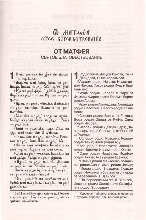 Новый Завет Господа нашего Иисуса Христа в параллельном переводе с церковно-славянского на русский язык.