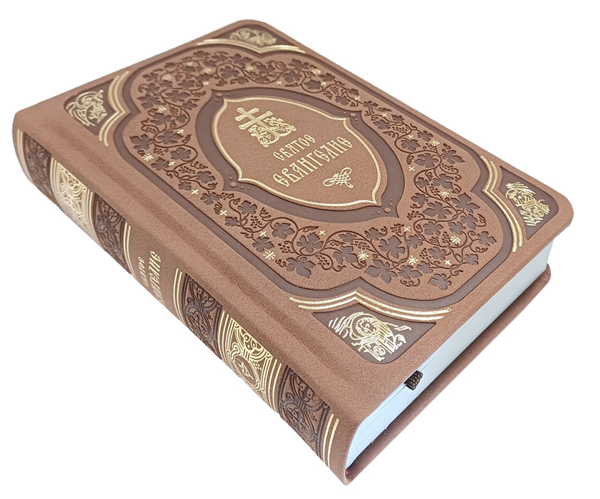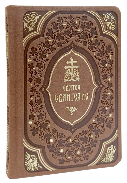 «Святое Евангелие» на русском языке в кожаном переплете на мелованной бумаге с закладкой.