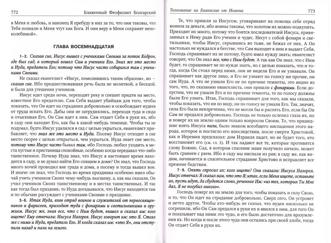 Толкование Святого Евангелия блаженного Феофилакта Болгарского в течение многих веков почитается Церковью достойнейшим творением, верно разъясняющим истинный смысл речей евангелистов. В толкованиях Священного Писания Феофилакт Болгарский следует традиции отцов антиохийской школы, особенно святителя Иоанна Златоуста. Текст толкования доступен пониманию всякого — коротко и ясно.