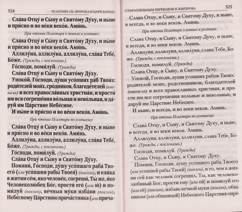 Также для удобства домашнего чтения в книгу добавлены молитвословия при чтении Псалтири за живых и усопших.