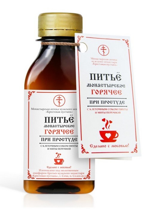 Питье монастырское горячее при простуде - высококонцентрированный эликсир на отваре лекарственных растений, с увеличенным содержанием клеточного сока пихты.