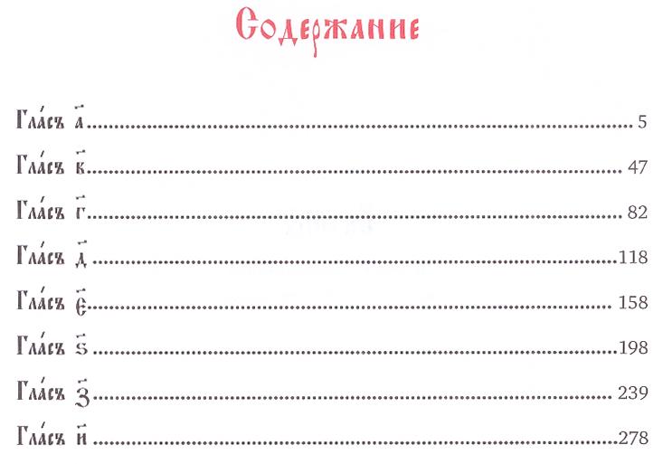 Попыткой сделать более доступным для прихожан богатство богослужебных текстов и вызвано появление этого сборника. В нем содержатся тексты песнопений (основная их часть) с параллельным русским переводом, используемых во время воскресного всенощного бдения. Перевод выполнен о. Амвросием Тимрот.