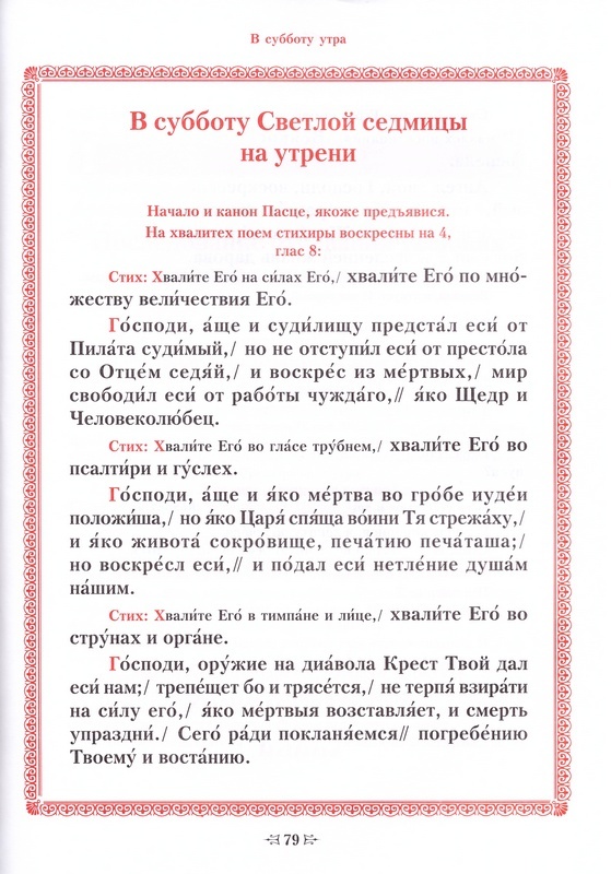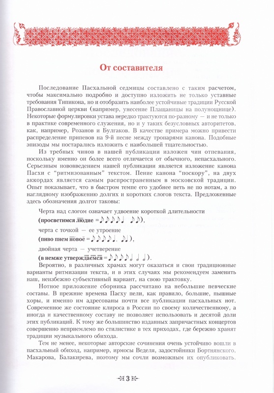 В данной публикации изложен чин отпевания, отличающийся от непасхального. Серьезным нововведением является в публикации изложение канона Пасхи с «ритмизованным» текстом.