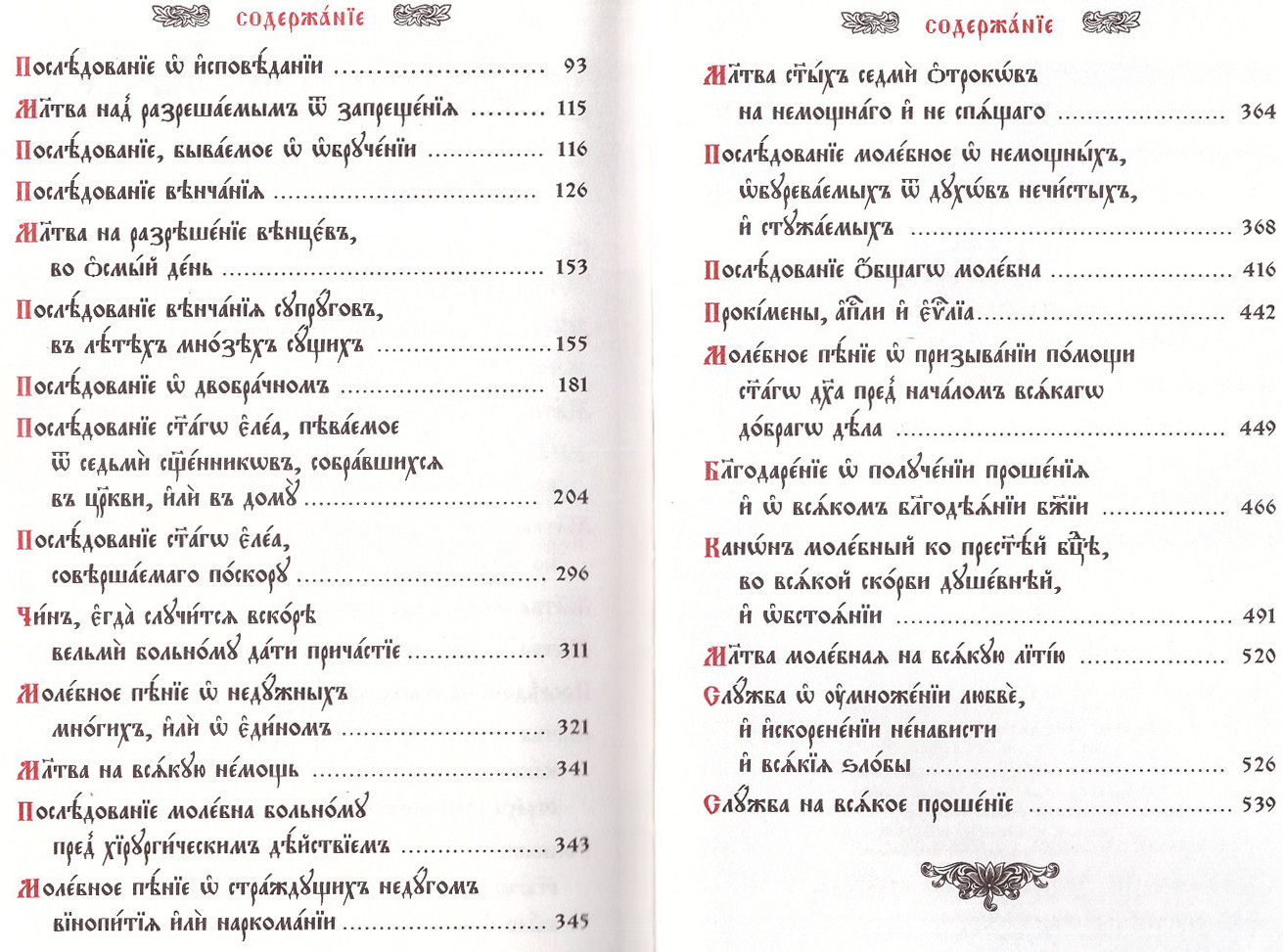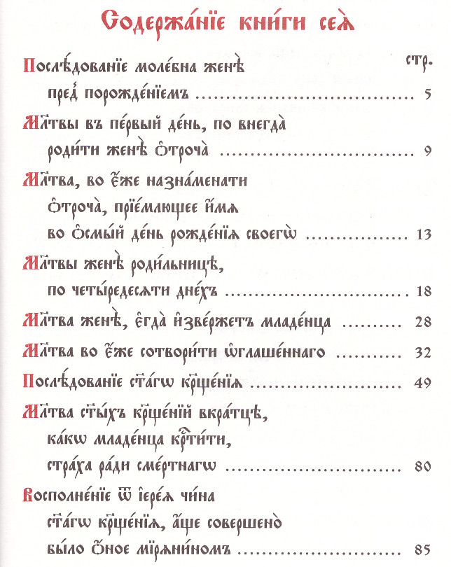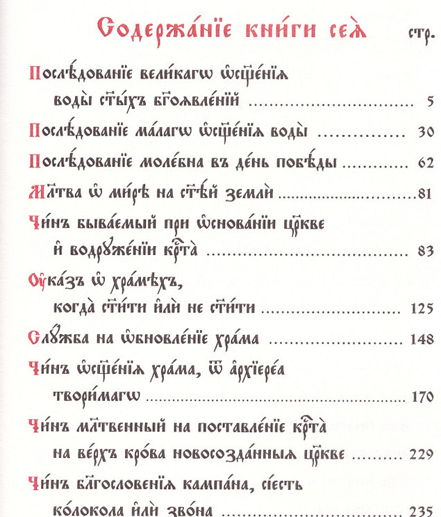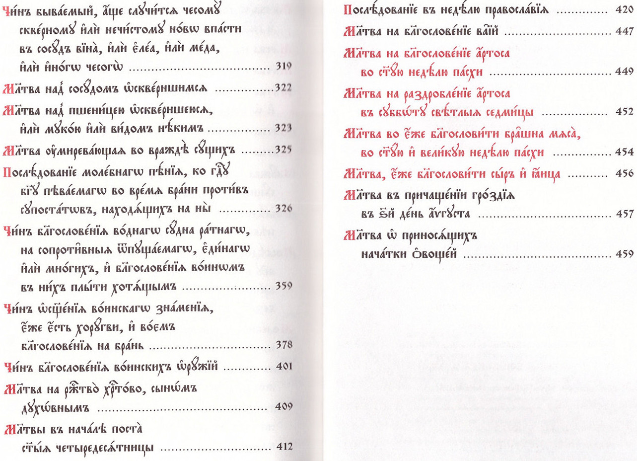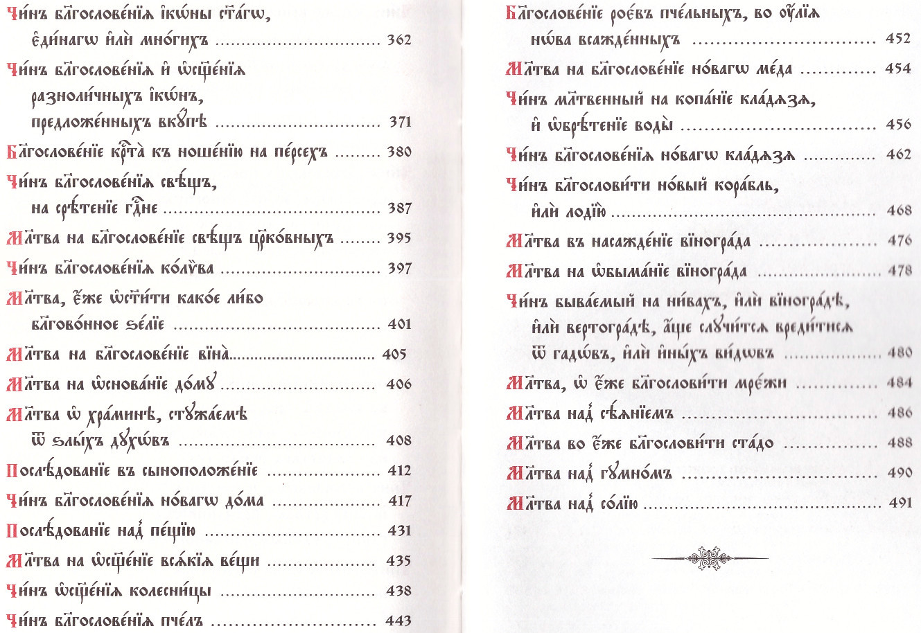 В первом томе Требника содержатся наиболее часто используемые чинопоследования: крещения, венчания, елеосвящения, молебны о болящих, путешествующих и многое другое.
