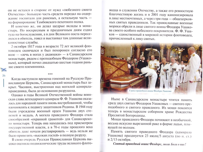 Книга рассказывает о святом праведном воине Феодоре Ушакове, человеке дважды прославленном — и как великий полководец адмирал, победитель абсолютно всех морских сражений, коюрысему пришлось вести, и как благочестивый православный мирянин, любивший Бога и Церковь, защищавший Годину п ее интересы с молитвой на устах и скончавший жизнь у стен монашеской обители.