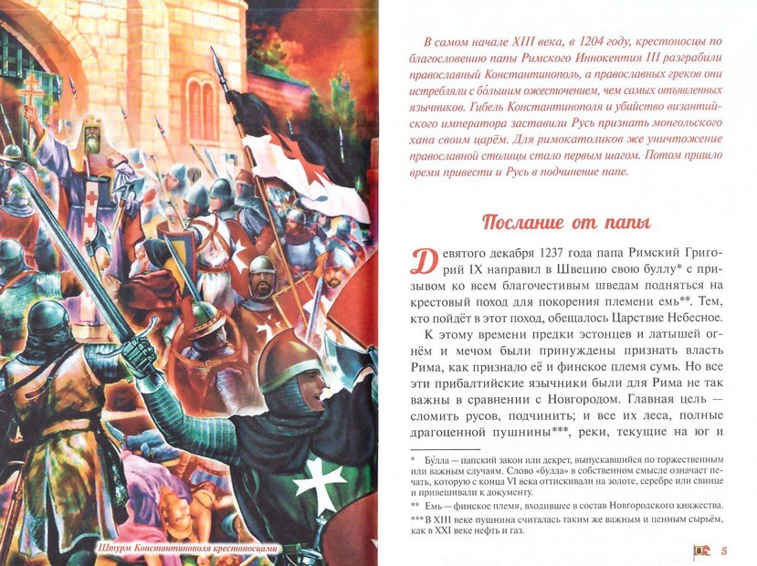 XIII век был очень трудным для Руси: с востока шли монгольские орды, уничтожая всё на своём пути, а с запада — католические рыцари, которые хотели не только захватить Русь, но и уничтожить самое главное — спасительную православную веру. В этот грозный час Промыслом Божиим встал на защиту Руси святой князь Александр. И в 1240 году на Неве, в своей первой битве, разбил врага. Князю в это время не было ещё и двадцати лет.