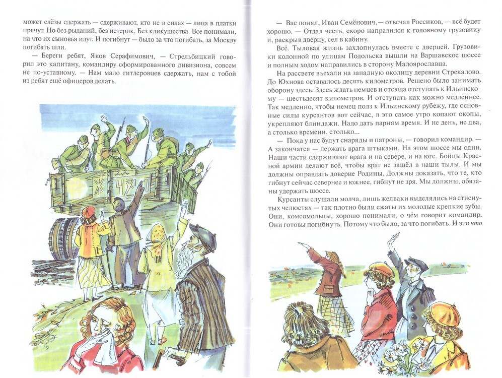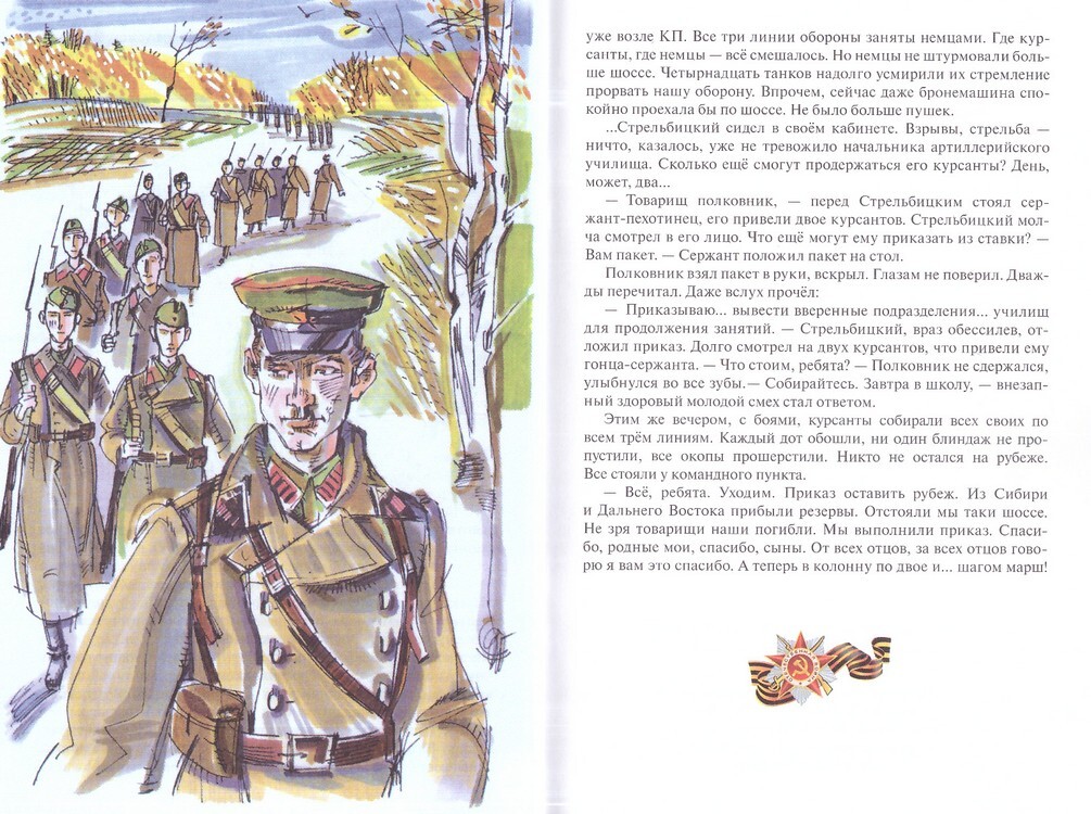 В первых числах октября 1941 года на Малоярославецком направлении появилась угроза выхода немцев к Москве. 5 октября по тревоге были подняты подольские курсанты из пехотного и артиллерийского училищ. Они должны были противостоять гитлеровцам, чтобы любой ценой задержать их продвижение до подхода наших резервов. Подольские курсанты перевыполнили поставленную верховным командованием задачу: они продержались на рубежах не пять-семь дней, как от них требовали, а почти две недели. О мужестве, отваге и самопожертвовании этих 17-19-летних героев - наш рассказ.