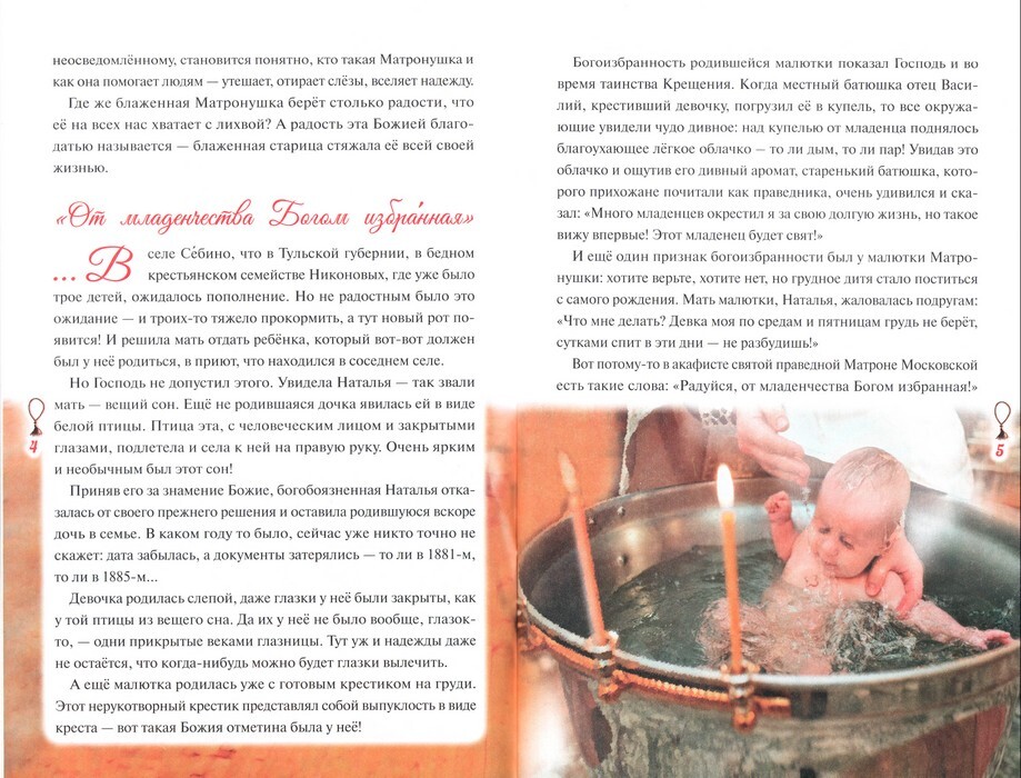 Автор книги Наталья Скоробогатько широко известна как современная сказательница житий святых. Ее книги о святом Луке, блаженной старице Сепфоре, рассказы о святых для детей уже более двадцати лет пользуются спросом у православных читателей. На этот раз автор живо и тепло повествует о жизни блаженной старицы Матроны Московской. Молитвенным продолжением жития служит акафист святой Матроне, вошедший в это издание.