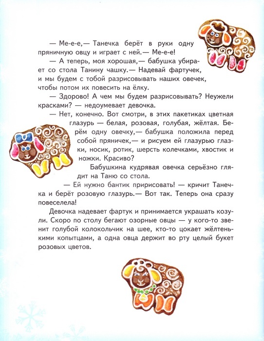 Для каждого ребёнка наряжать рождественскую ёлку — всегда событие. А если своими руками смастерить красивые и вкусные ёлочные украшения — получится целый праздник! Танечка и бабушка 25 декабря/7 ядваря вместе разрисовывают пряничные козули, и бабушка рассказывает внучке о святителе Спиридоне Тримифунтском и его овце.