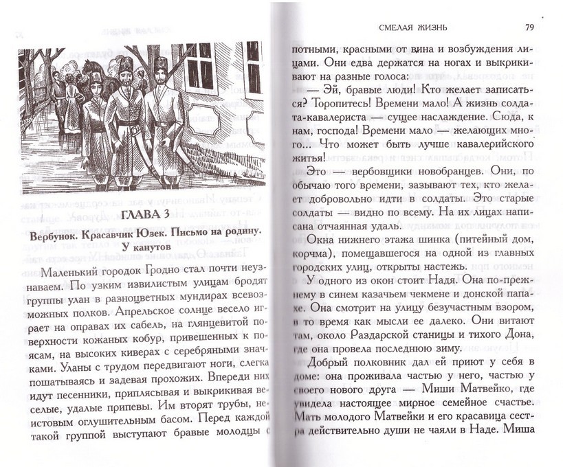«Мимо Нади пронесся полковой адъютант и, приложив руку к козырьку, почтительно доложил что-то ротмистру Галлеру. Надя успела уловить одно: приказано повернуть к Гутштадту и занять позиции вблизи местечка.
