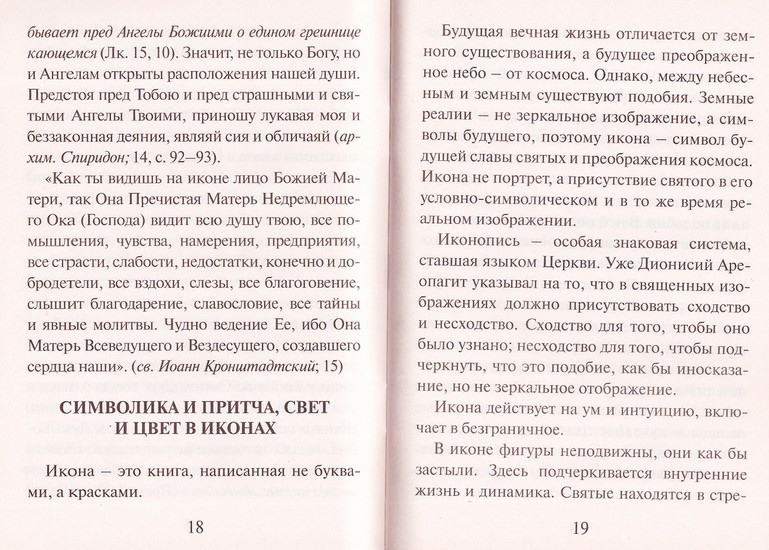 Настоящая брошюра рассказывает о том, что представляют собой иконы и для чего они нужны; объясняется разница между иконой и портретом; раскрывается значение разных символов на иконах; большое место уделено истории появления и развитию иконописного творчества в истории Церкви, а также полемике с иконоборцами и догматических основаниях иконопочитания в Православной Церкви