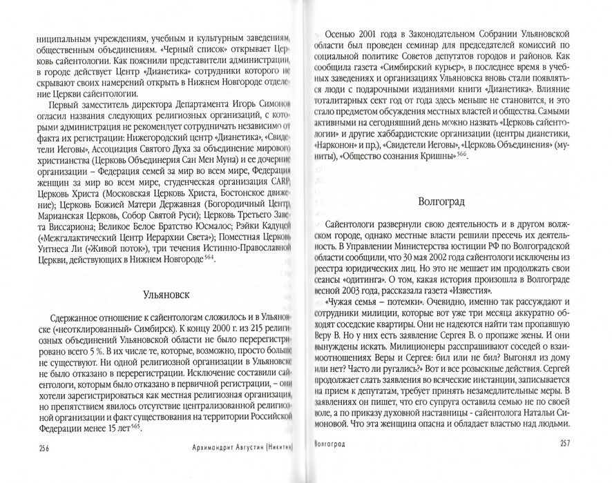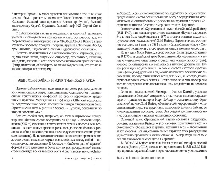 Работа доцента Санкт-Петербургской Духовной Академик, научного сотрудника Санкт-Петербургского Православного Института Религиоведения и Церковных Искусств архимандрита Августина (Никитина) посвящена «Церкви Сайентологии» и ее основателю Рону Хаббарду По степени деструктивности для своих членов, сайентология является одной из наиболее опасных группировок. Сегодня, когда так мало информированы наши соотечественники о деятельности подобных религиозных организаций, книга архимандрита Августина очень своевременна. Выражаем надежду, что читатели, найдя в ней точную и непредвзятую информацию о деятельности «Церкви Сайентологии», смогут обезопасить как себя, так и своих близких.