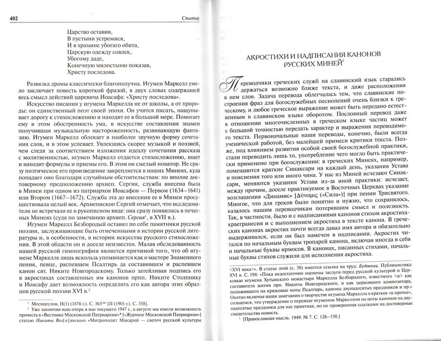 Монография посвящена рассмотрению и сопоставлению русских непереводных служб, помешенных и дореволюционных богослужебных Минеях, а также вопросам авторства анализируемых гимнографических текстов. Статьи по многом дополняют исследование.