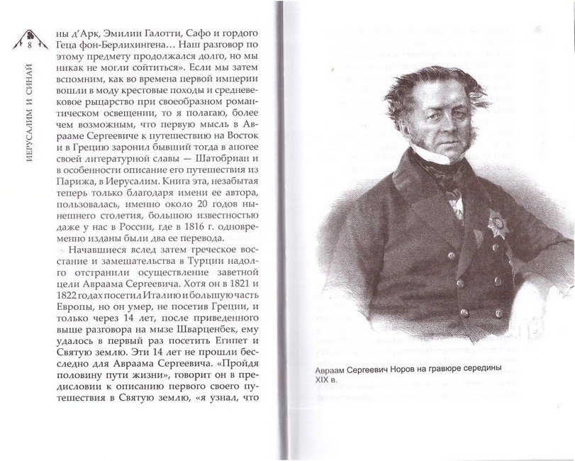 Представление россиян XIX века о Святой земле во многом основывалось на паломнических записках Авраама Сергеевича Норова (1795-1869). Герой Бородинского сражения, государственный чиновник, министр просвещения, писатель и путешественник, один из первых исследователей Востока, дважды, в 1834 и 1861 годах, совершил путешествие в Палестину.