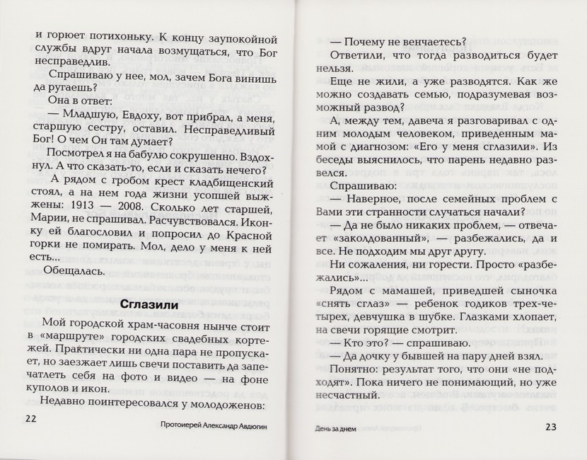 Размышления сельского священника о жизни, о себе и людях. Безыскусные, простые и мудрые, полные доброго юмора, они увлекательно и правдиво передают повседневную жизнь современного прихода с его чудесами, горестями и радостями. Они заставляют нас по-новому взглянуть на прожитую жизнь, произвести переоценку ценностей, всерьёз задуматься о вечных истинах: добре и зле, жизни и смерти, грехе и добродетели