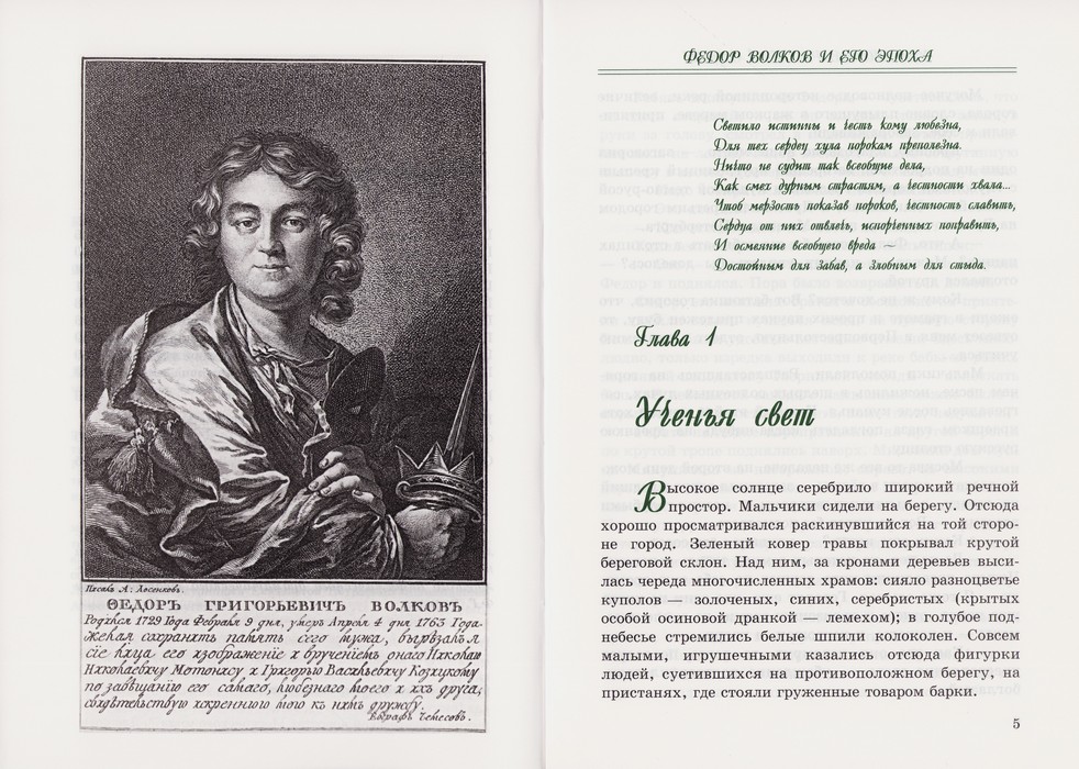 В книге использованы многочисленные исторические документы и материалы. Деятельность Волкова представлена в контексте исторического развития нашей национальной культуры елизаветинского времени, в отношениях с выдающимися своими современниками — А. П. Сумароковым, И. А. Дмитревским, А. П. Лосенко, с императрицами Елизаветой Петровной и Екатериной Алексеевной и другими.