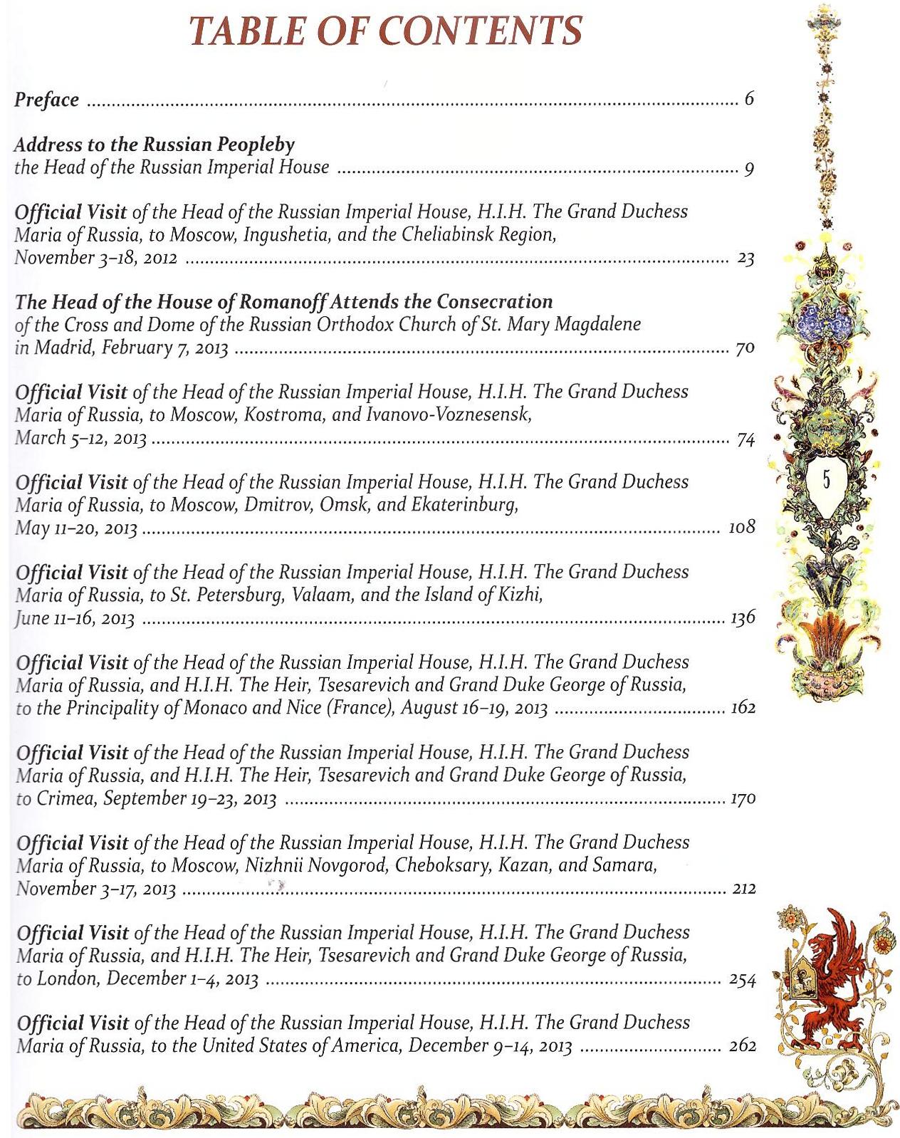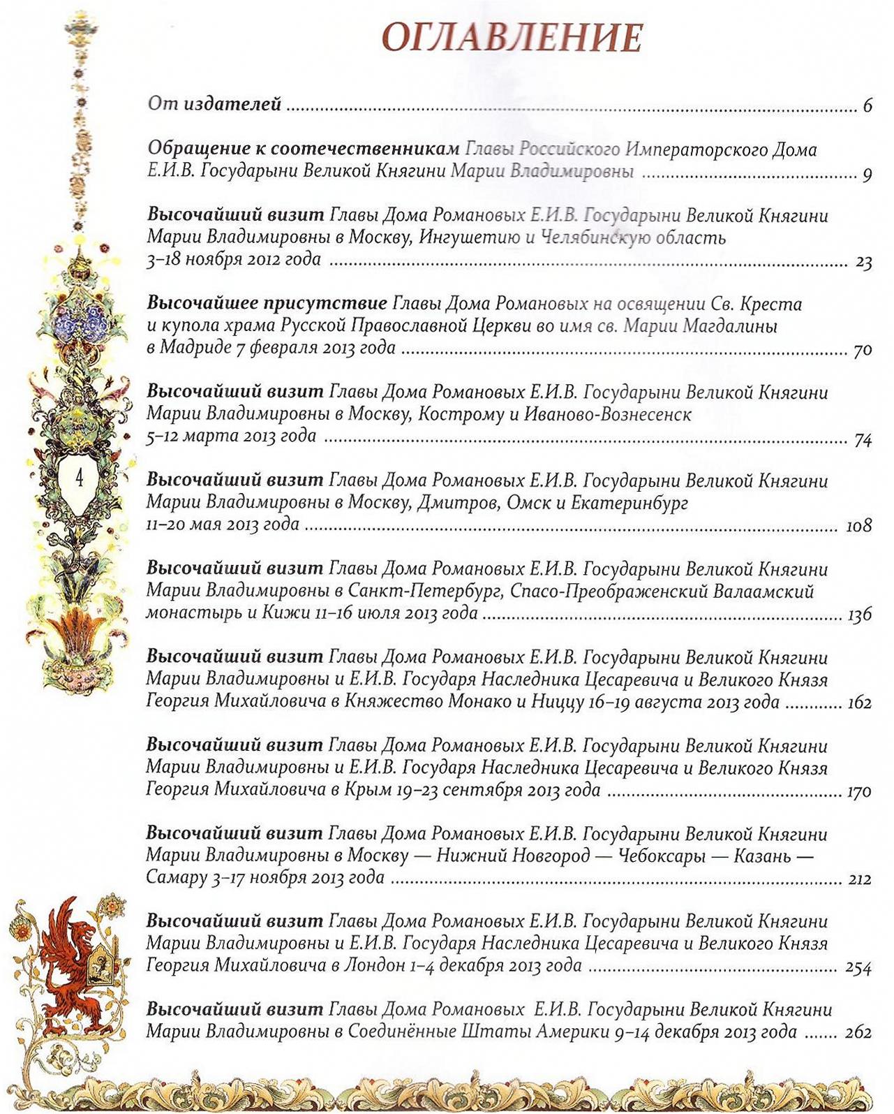 Книга богато иллюстрирована фотографиями визитов Главы Дома Романовых Великой Княгини Марии Владимировны и ее наследника Великого Князя Георгия Михайловича.