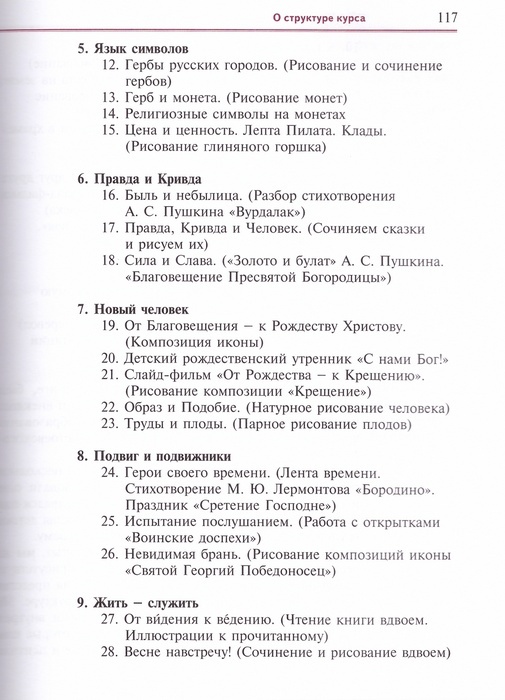 1. Масленичная трапеза. Педагогическое значение застолья. 2. Смысл поста. 3. Внутренняя жизнь человека. Невидимая брань 4. Просмотр слайдов икон «Святой Георгий Победоносец». 5-6. Рисование и просмотр композиционных эскизов иконы «Чудо святого Георгия о змие». 7. Великопостная молитва Ефрема Сирина