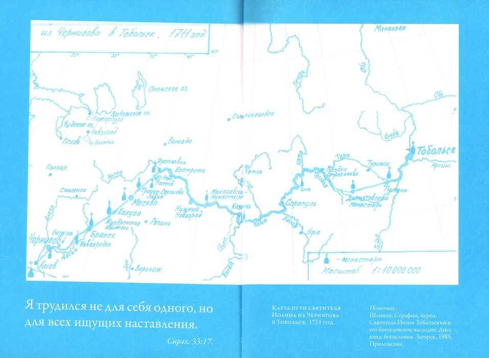 Святитель Иоанн (Максимович) (1651-1715, дни памяти 23 нюня и 29 октября; с 1697г. - архиепископ Черниговский и Новгород-Северский, с 1711г. митрополит Тобольский и всея Сибири) был выдающимся иерархом, оставившим заметный след в истории Русском Церкви, отеческого книгопечатания и богословской мысли. Стихотворное сочинение свт. Иоанна Тобольского, известное под названием «Путник», представляет собой обширный стихотворный дневник путешествия святителя из Чернигова в Тобольск.