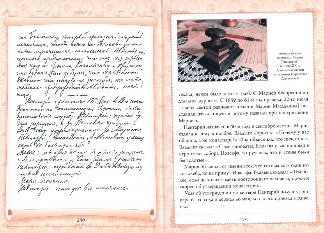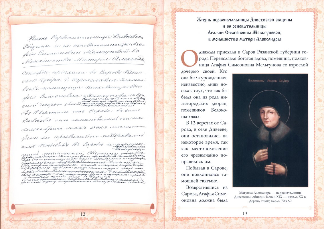 Сестрами Дивеевской обители в конце ХIХ века была создана рукописная летопись. Это архивный материал, который использовал священномученик Серафим (Чичагов)