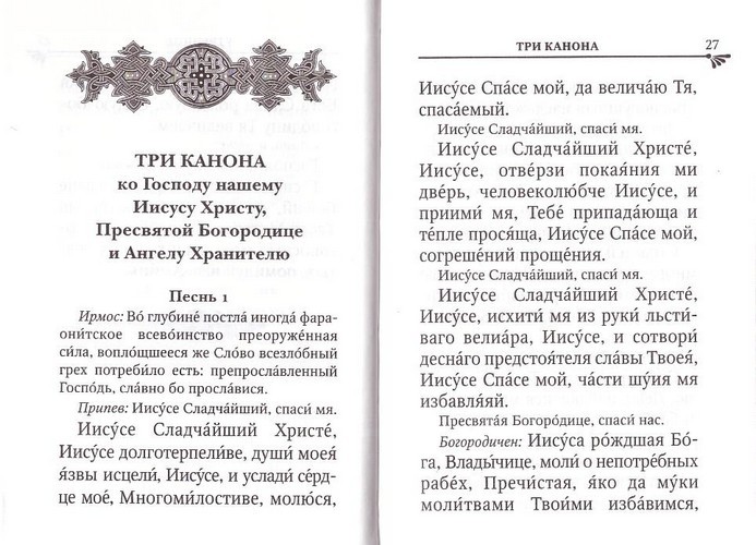 Три канона ко Господу нашему Иисусу Христу, ко Пресвятой Богородице и к Ангелу Хранителю