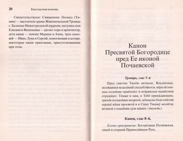 Канон Пресвятой Богородице пред Ее иконой Почаевской