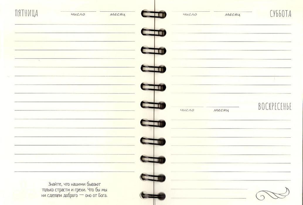 Ежедневник недатированный «Слово доброе» с наставлениями преподобного Паисия Святогорца подойдет как для делового планирования так и для личных заметок. Ежедневник послужит для записи духовных размышлений, которые, несомненно, возникнут после прочтения добрых наставлений афонского старца.