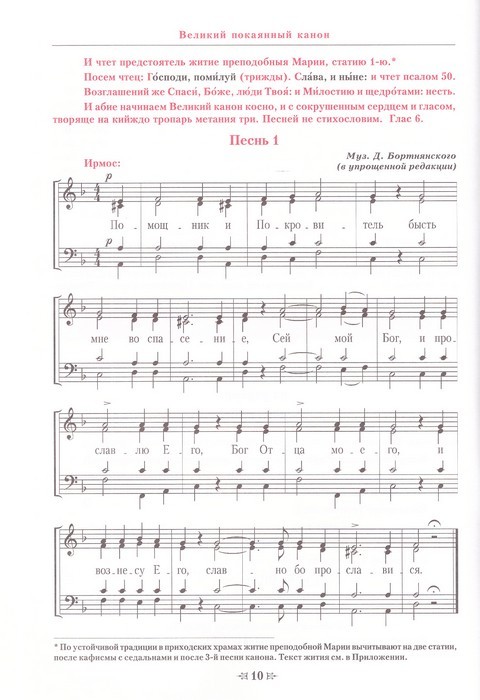 В сборнике приводится полный текст и ноты одной из главных служб Великого Поста — утрени четверга 5-й седмицы — Марииного стояния. В книге также содержится Житие святой прп. Марии Египетской — одной из величайших святых подвижниц, по воле Божьей преодолевшей свои тяжкие грехи и ставшей символом праведности для всего православного мира.