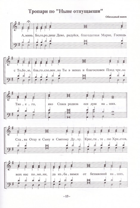 8. Тропари по «Ныне отпущаеши» Обиходный напев