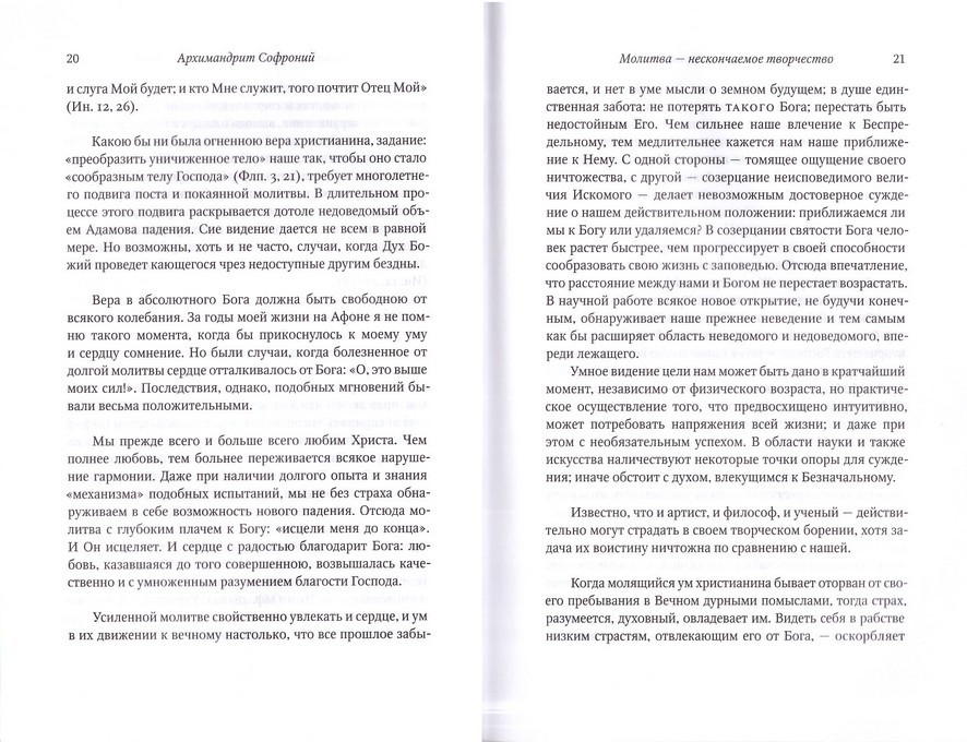 Архимандрит Софроний (Сахаров; 1896-1993) — один из самых выдающихся подвижников и духовных писателей прошлого столетия. Предлагаемая книга является сборником статей, посвященных темам молитвы и духовнического служения. В настоящее издание не вошли главы «Духовная жизнь» и «Путь Богопознания» (см.: Софроний (Сахаров), архим. Таинство христианской жизни. Сергиев Посад, 2020; Рождение в Царство Непоколебимое. М., 1999), которые являются частью одноименного сборника на греческом языке.