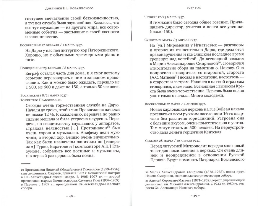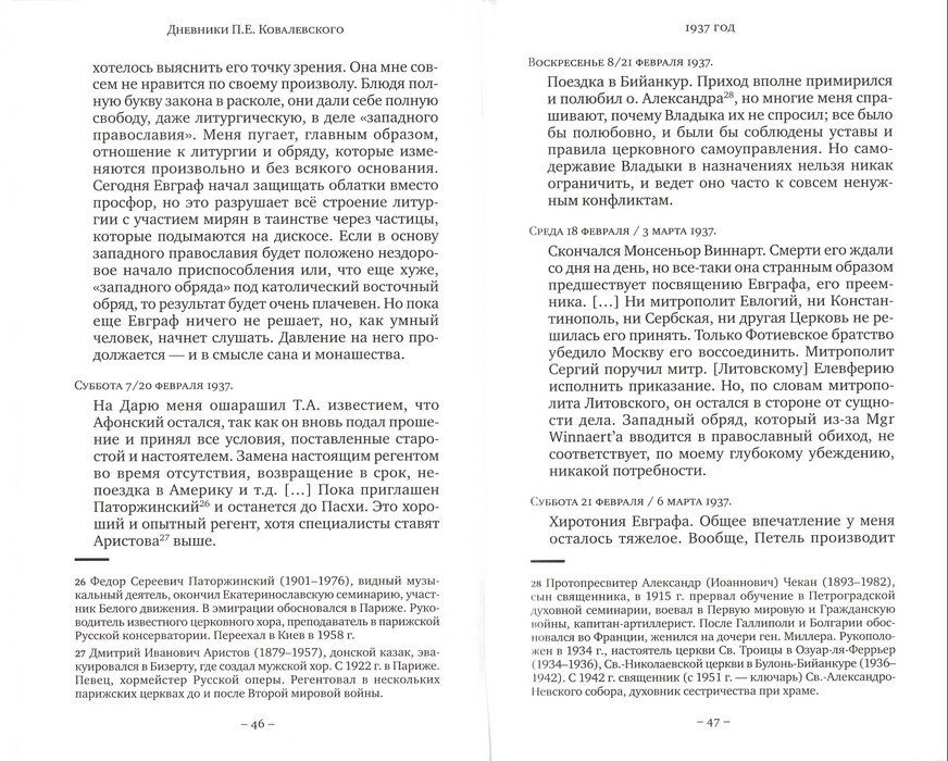 В настоящей книге опубликованы выдержки из дневниковых записей Петра Евграфовича Ковалевского, охватывающие 12 лет, 1937-1948 гг. В книгу включены записи, отражающие выбранную тему — церковная и церковно-общественная жизнь русского зарубежья, преимущественно в Париже и в парижском районе. Петр Ковалевский являлся видным деятелем в области организации и развития школьного дела при православных приходах, преподавал в Св. Сергиевском богословском институте, участвовал в деятельности Русского студенческого христианского движения (РСХД,). посвящал много времени общественно церковной работе. Всему этому уделено много места в «Дневниках».