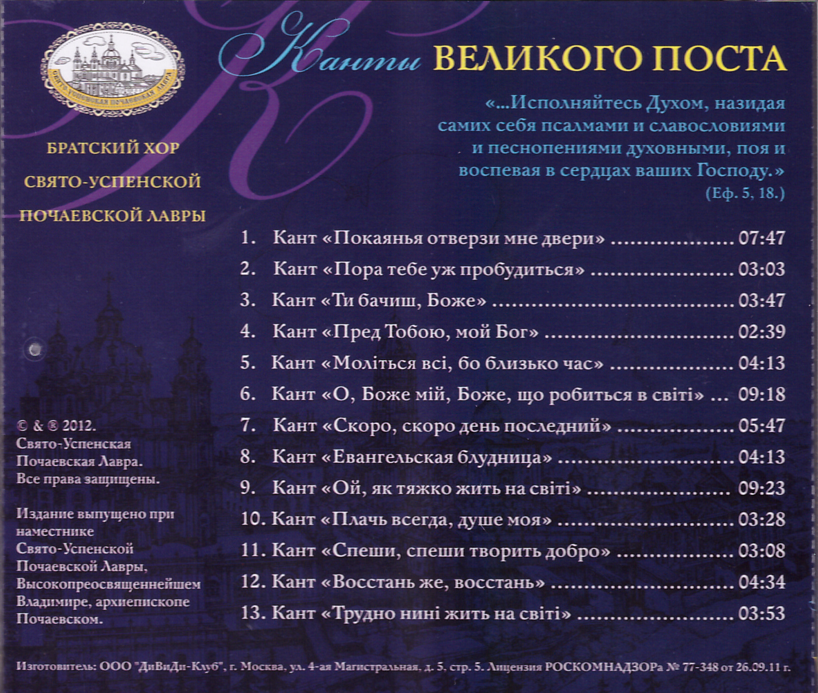 «...Исполняйтесь Духом, назидая самих себя псалмами и славословиями и песнопениями духовными, поя и воспевая в сердцах ваших Господ» (Еф.5,18)