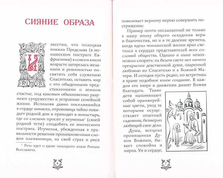 «Сияние образа» — новый труд протоиерея Артемия Владимирова, приуроченный к 900-летию основания Полоцкого Спасо-Евфросиниевского монастыря. Особенность книги 13 соотнесении образа преподобной подвижницы — святой Евфросинии Полоцкой — и ее нравственных совершенств с душой христианина 21-го столетия. Издание рассчитано на самую широкую аудиторию.