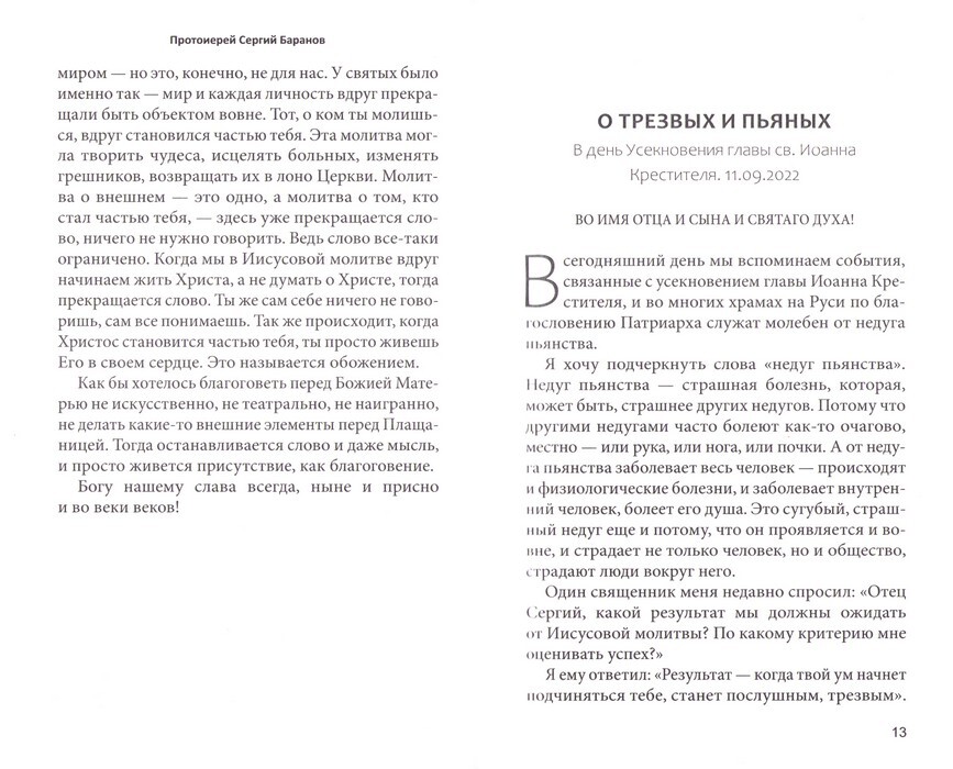 В книгу протоиерея Сергия Баранова включены проповеди 2022-2023 годов, а также проповеди Великого поста 2023 года. В своих проповедях отец Сергий учит не бояться ставить перед собой высокие духовные цели, говорит о стяжании Духа Святого, о смысле жизни.