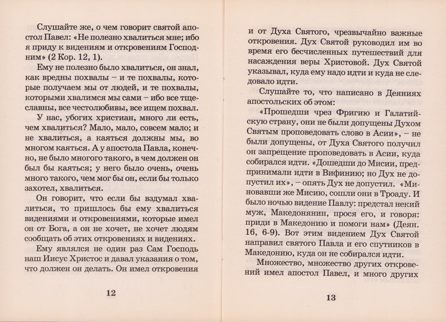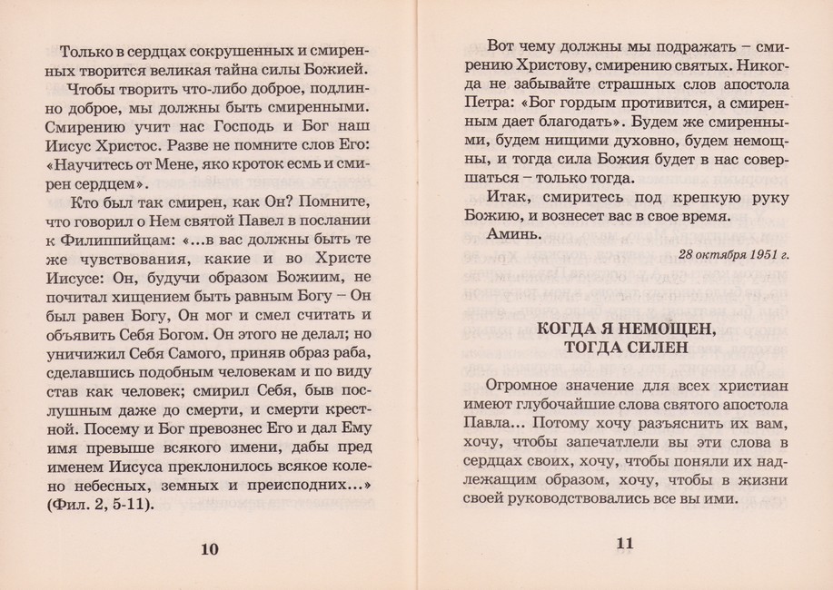 "...Как же сила Божия совершалась в апостоле? Почему это, когда мы немощны, тогда сильны? Вспомним о великих подвижниках Христа ради юродивых. Кто был более немощен, чем они, когда по целым дням преследовали их грубые люди насмешками, издевательствами, ругательствами, побоями? Кто страдал на жестоком морозе почти без одежды, с босыми ногами, кто спал на камнях паперти церковной, кто терпел голод и жажду - кто был более немощен, чем они?! Но в этой немощи их совершалась великая сила Божия, ибо Бог за эти тяжкие подвиги их даровал им великие силы духовные, дар прозревать в сердца человеческие. Божия сила изрекала пророчества устами этих немощных, всеми презираемых и гонимых..."