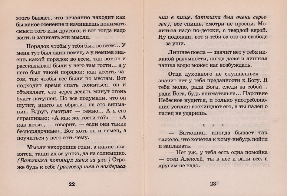 Эта книга – живое свидетельство о светоносном московском батюшке. Ее название – «Советы девушке-христианке» – условно, это поучения, записанные одной из духовных чад отца Алексея. Послушница Чудова монастыря Мария, одна из тех, кто после закрытия монастыря в 1919 году, оказалась в храме на Маросейке: «Когда мы лишились Чудова монастыря, и как овцы без пастыря рассыпались всюду, не зная, где приклонить голову, тогда многие отправились на Маросейку к отцу Алексею, и добрый батюшка с необыкновенной любовью и лаской принял под свое попечение нас, скорбных, печальных сирот...»