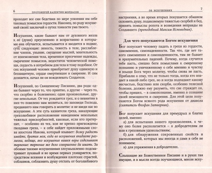 В этой книге протоиерея Валентина Мордасова на основе святоотеческого опыта рассказывается об искушениях: для чего они попускаются Богом, как к ним относиться и как их мудро переносить, какими искушениями враг поражает нас и каков их духовный смысл. Приводятся душеполезные изречения о том, как именно надо бороться с помыслами и как освящать себя. Отдельные главы книги адресованы людям, пребывающим в скорбях и болящим, особенно нуждающимся в духовном утешении.