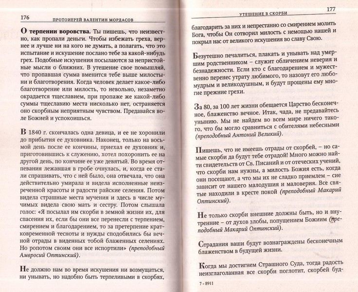 "Если тебе приходится переносить искушения, сильные напасти, скорби и болезни, то не малодушествуй, не унывай и не ропщи, не желай себе смерти, не говори дерзких речей перед Всевидящим Богом, например, таких: «О, какая лютая скорбь, о, какая не по силам моим напасть, — лучше бы умереть мне, или лучше убил бы я себя!». Избави тебя Бог от такого малодушия, ропота и дерзости! Но все это терпи великодушно, как посланное тебе от Бога за грехи твои, и с разбойником благоразумным повторяй: «Достойная по делом моим приемлю», — да взирай мысленными очами на страждущего на кресте Спасителя." Святой Иоанн Кронштадтский