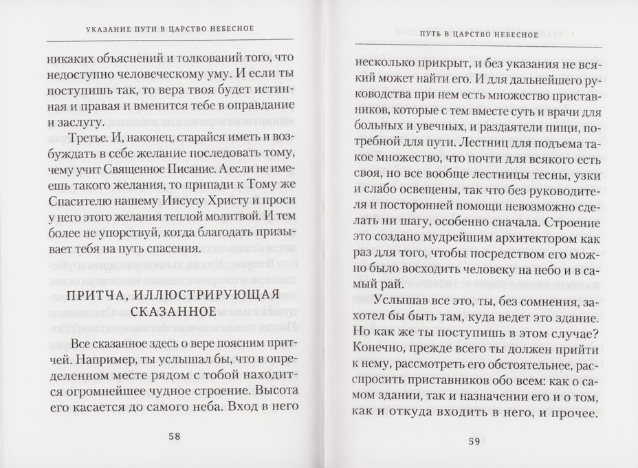 «Указание пути в Царство Небесное», написанное святителем Иннокентием, апостолом Америки, для новообращенных жителей Алеутских островов, задумано автором как путеводитель в рай. Путь туда труден, но прошедшего по нему до конца ждет бесконечная радость встречи с Небесным Отцом. О том, какие опасности подстерегают нас на этом пути, и какая помощь нас ждет, если мы искренне и от всего сердца будем просить о ней, говорится в этом небольшом сочинении, которое признано одним из лучших произведений православной миссионерской литературы.