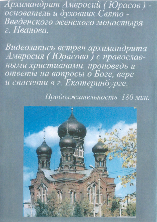 Архимандрит Амвросий ( Юрасов ) - основатель и духовник Свято -Введенского женского монастыря г. Иванова. Видеозапись встреч архимандрита Амвросия ( Юрасова ) с православными христианами, проповедь и ответы на вопросы о Боге, вере и спасении в г. Екатеринбурге.