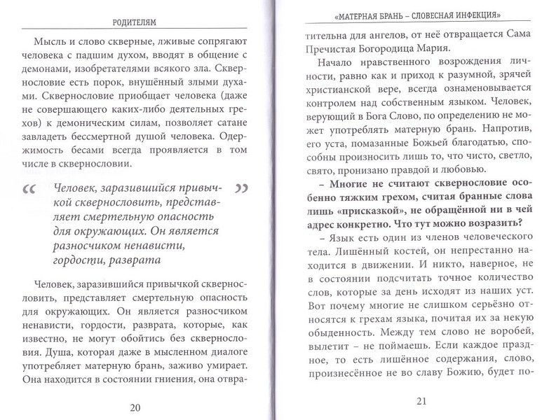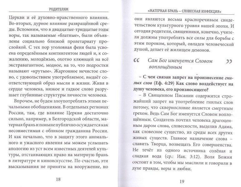 Эта небольшая книга в ясной и доступной форме объясняет, почему в человеческом обществе существует строгий запрет на использование некоторых (в наше время, к сожалению, хорошо известных даже первоклассникам) слов и выражений, и рассказывает о страшных последствиях ругани. Читатель убедится, что дурные слова не что иное, как богохульство, и происхождение их самое низкое и отвратительное.