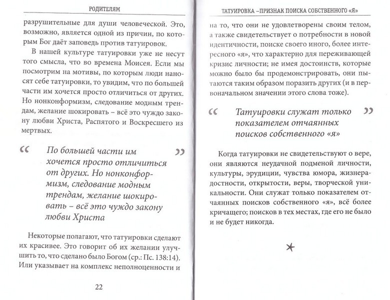 Здесь собраны мнения современных священников и психологов о татуировках и пирсинге, которые показались нам убедительными, доходчивыми и одновременно - учитывающими реалии современной жизни. Надеемся, что, собранные вместе, эти материалы дадут полноценное представление о христианском взгляде на это явление сегодняшней жизни и послужат к пользе читателя.