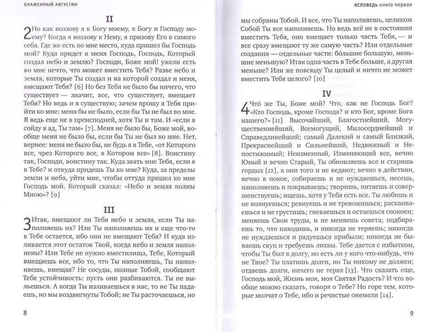 В сборник включены две книги — «Исповедь блаженного Августина, епископа Гиппонского» и Жизнеописание блаженной Моники под названием «Блаженная Моника. Мать блаженного Августина». «Исповедь» считается первым образцом автобиографии в европейской литературе. Она охватывает часть жизненного пути блаженного Августина (33 года из около 40 прожитых им к моменту написания) и содержит повествование о его духовном поиске. Блаженную Монику почитают как покровительницу матерей. Ее непрестанная молитва за сына, блаженного Августина, спасла его от духовной гибели. Со временем он стал одним из величайших отцов Церкви и с благодарностью писал, что своим обращением в христианство он обязан молитвам матери.