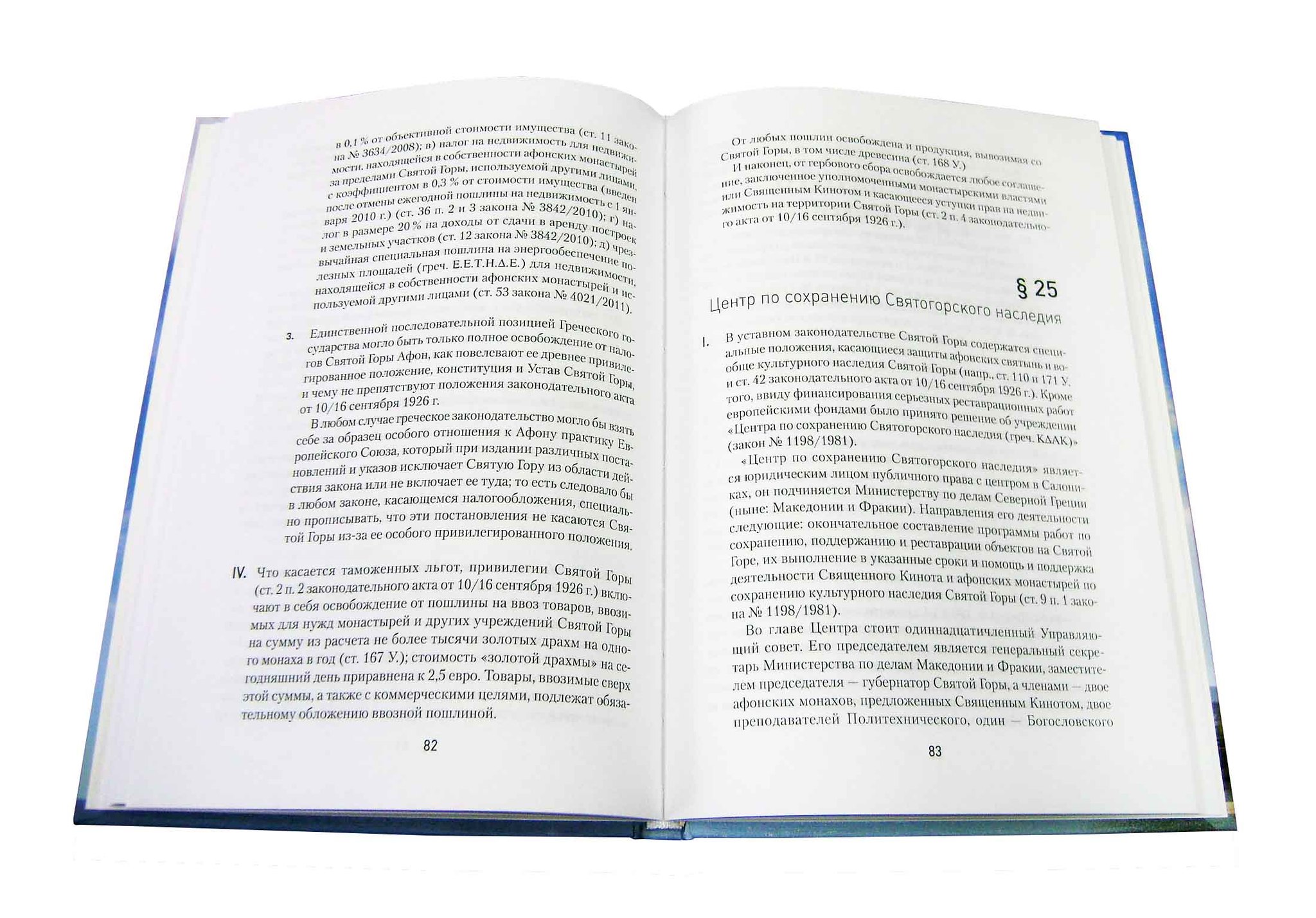 Современный выдающийся исследователь, профессор церковного права Иоаннис Конидарис четко и ясно повествует как о крайне сложных внутренних законах существования монашеской республики, так и о законах ее взаимоотношений с государством. Одна глава из его книги «Особые церковные уставы»предлагается вниманию российских читателей, питающих любовь к Святой Горе.