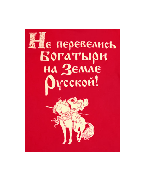 На задней стороне футболки надпись "Не перевелись богатыри на Земле Русской!"