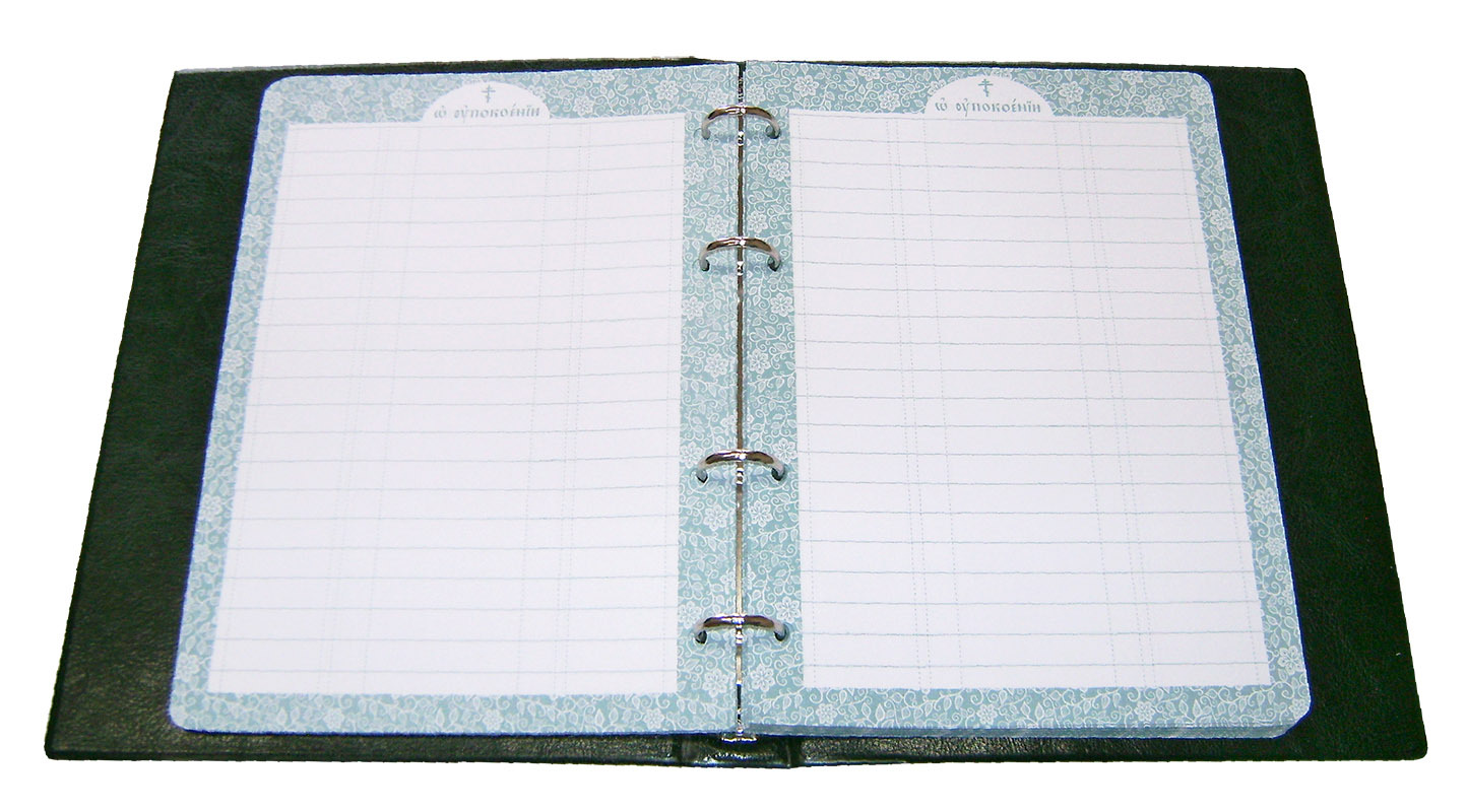 В комплект входит сменный блок на 80 листов, напечатанный на качественной офсетной бумаге. Поля по периметру листа украшены цветной пастельной заливкой с орнаментальным узором, внешние углы скруглены. Каждый лист с двух сторон специально разлинован для записи имён и дат.