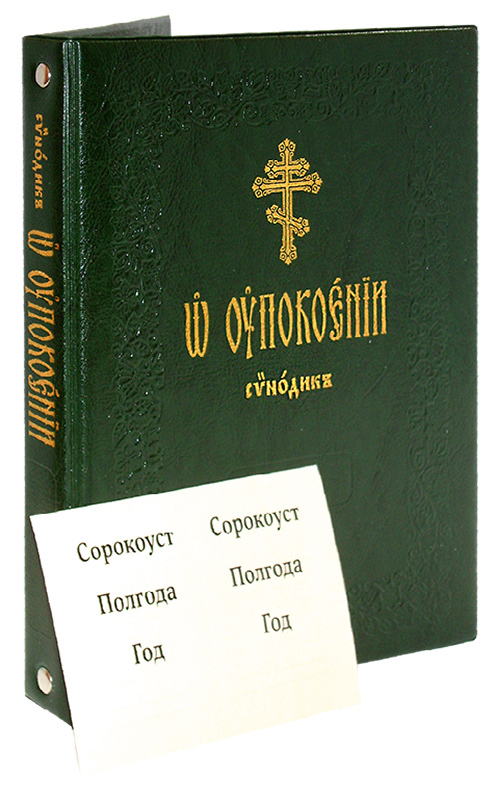 Синодик представляет собой папку с кольцевым зажимным механизмом и сменным блоком для приёма и ведения церковных поминовений на длительные сроки. Папка выполнена в тёмно-зеленом цвете. Материал папки — картонные сторонки и плотный ПВХ. На лицевой стороне выполнено орнаментальное блинтовое тиснение, крест и название оттиснены золотой фольгой. Для маркирования длительности поминовения к каждой папке приложен лист с наклейками: «Сорокоуст», «Полгода», «Год». Четвёртая наклейка — пустая с разлиновкой для самостоятельного нанесения на неё какого-либо срока поминовения, принятого в конкретном храме или монастыре, но не распространённого повсеместно. Наклейки наносятся на обложку и корешок папки, для этого предусмотрены визуально заметные оттиснённые пустые области.