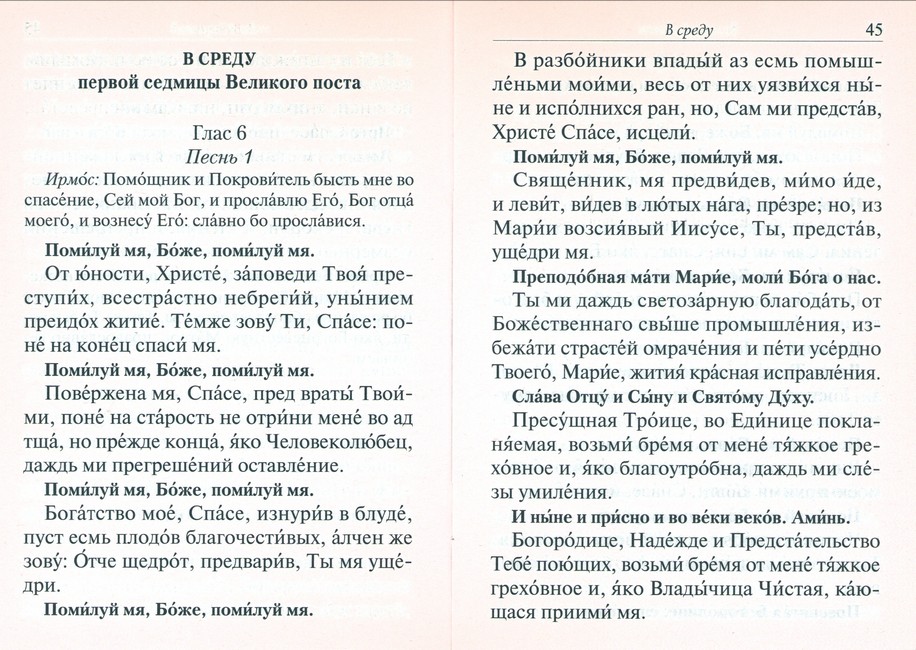 Великий покаянный канон преподобного Андрея Критского, читаемый на первой седмице Великого поста. Житие преподобной Марии Египетской.