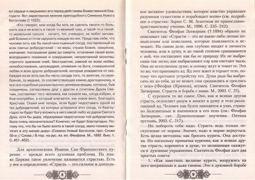 ...Не можете оставить табак курить. Невозможное от человек - возможно при помощи Божией, только стоит твердо решиться оставить, сознавая от него вред для души и тела, так как табак расслабляет душу, умножает и усиливает страсти, омрачает разум и разрушает телесное здоровье медленной смертию. Преподобный Амвросий Оптинский